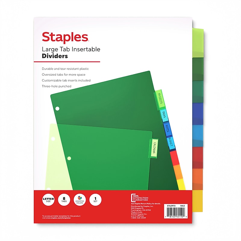 Staples Large Tab Insertable Plastic Dividers Multicolor 8 Tabs