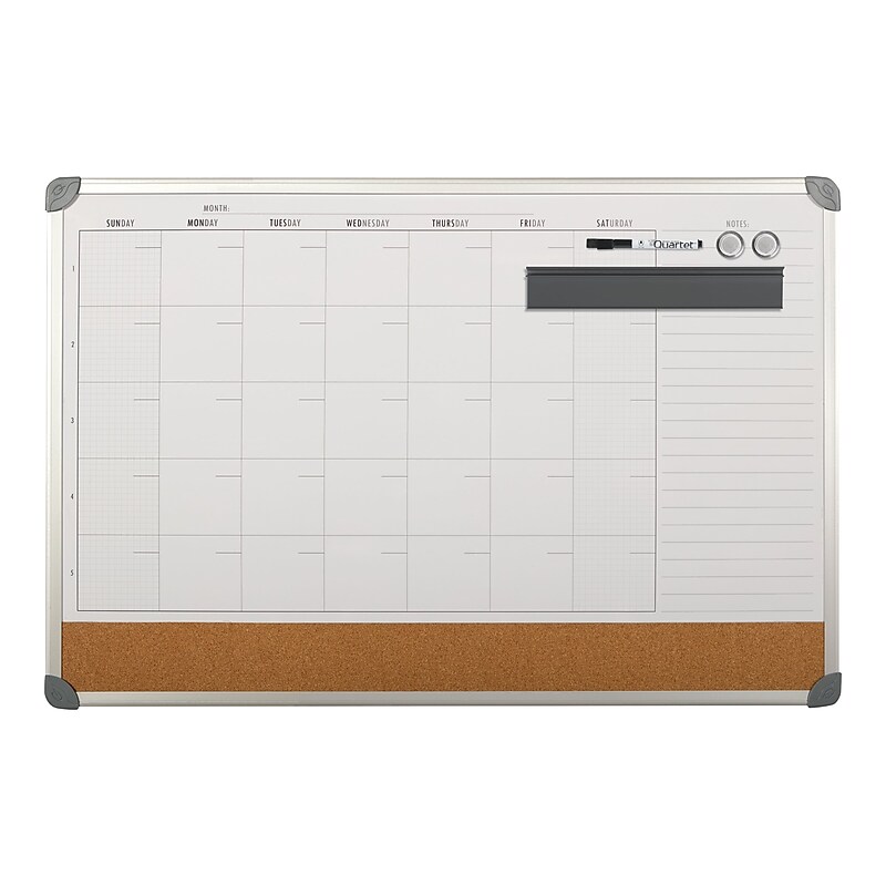 Quartet Magnetic Calendar Cork Dry Erase Whiteboard Aluminum Frame