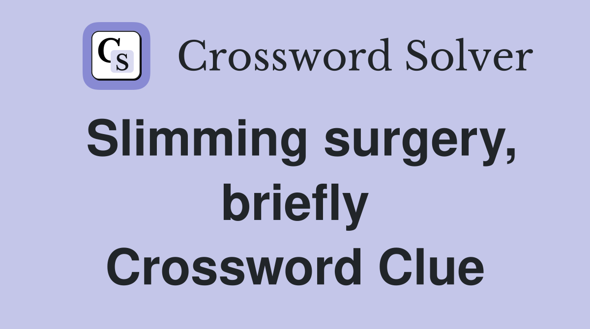 Slimming surgery briefly Crossword Clue Answers Crossword Solver