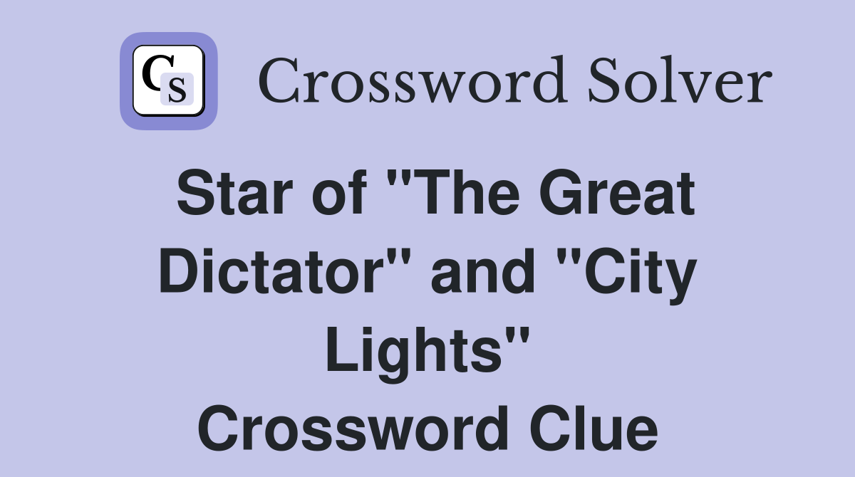 Star of quot The Great Dictator quot and quot City Lights quot Crossword Clue Answers