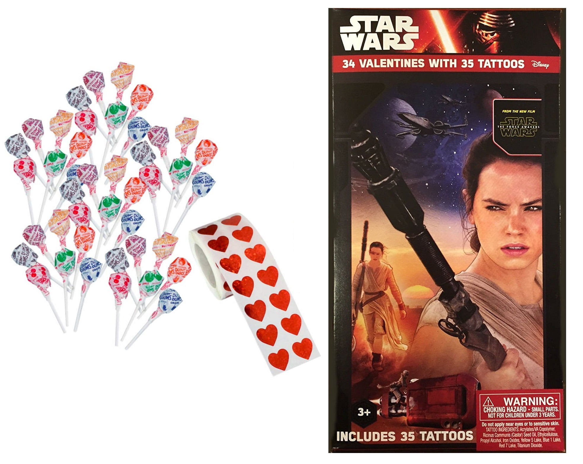 Star Wars Valentine Cards Box of 34 Cards 35 Tattoos 34 Heart Sticker