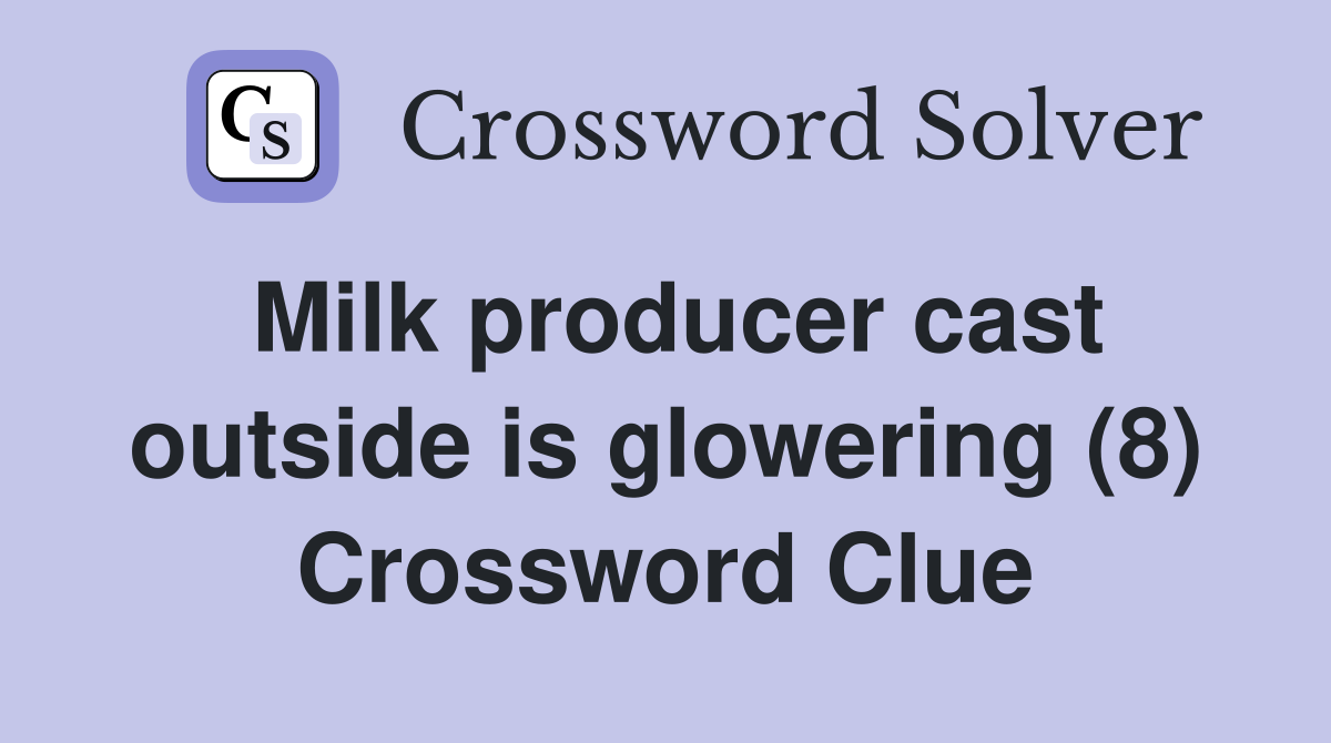 Milk producer cast outside is glowering (8) Crossword Clue Answers