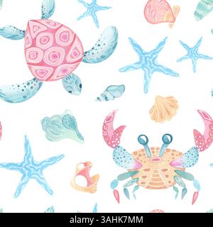 Watercolor Seamless Pattern On The Marine Theme With Underwater Plants