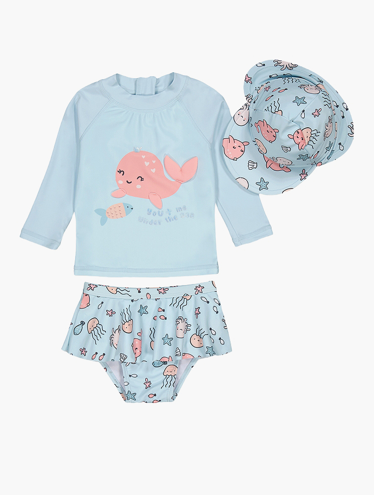 MyRunway Shop Woolworths Blue Sea Print Long Sleeve Swimsuit Hat