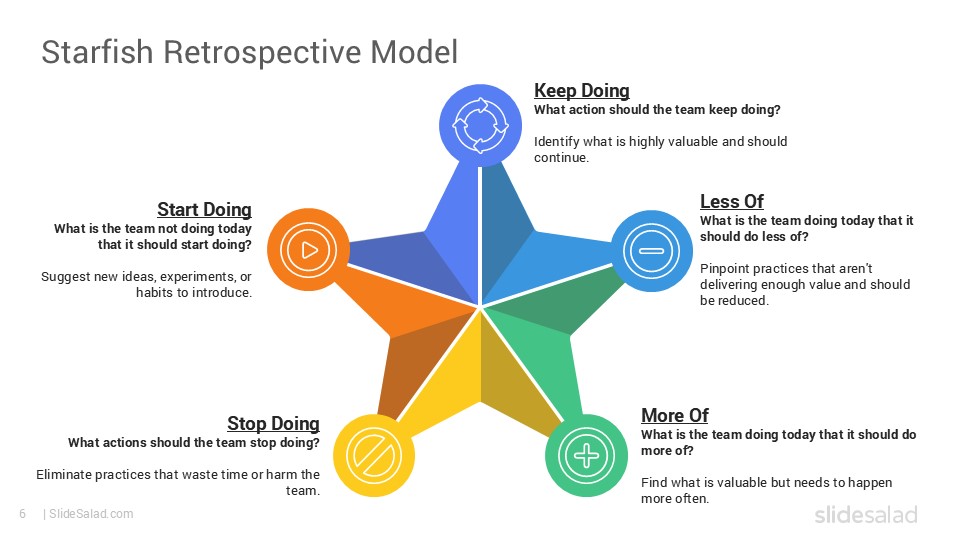 Starfish Retrospective Diagram for Powerpoint EdrawMax Template