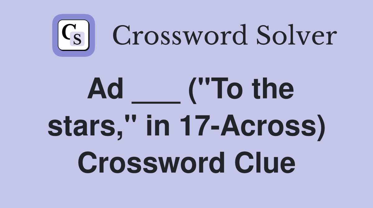 Ad ( quot To the stars quot in 17 Across) Crossword Clue Answers