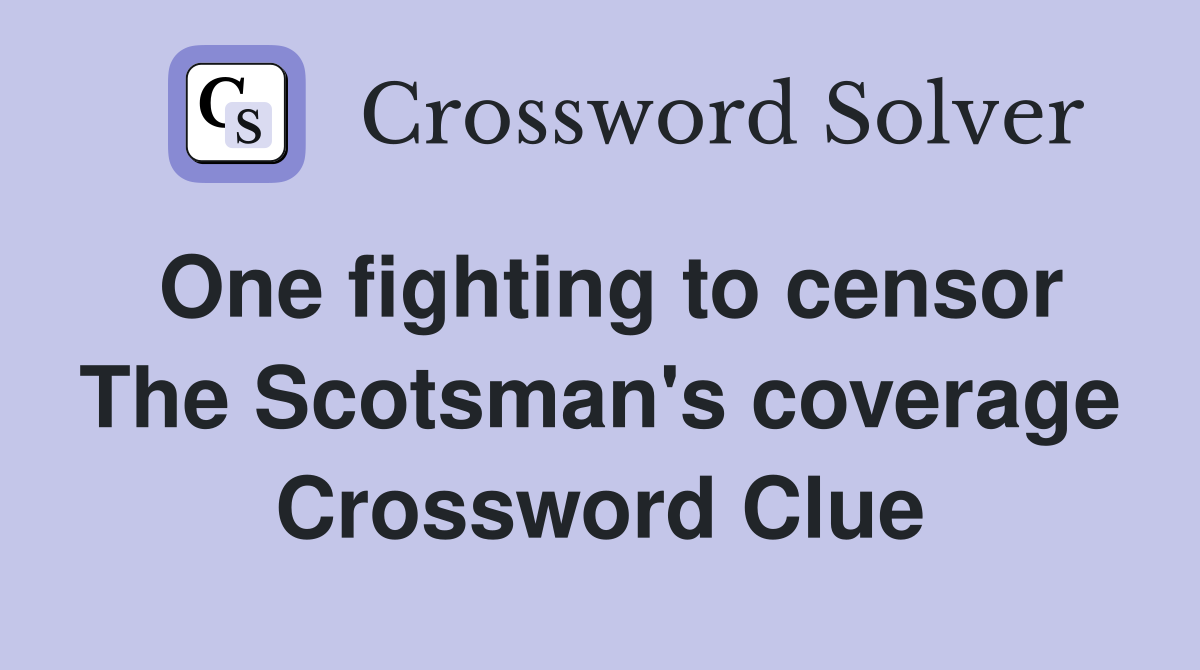 One fighting to censor The Scotsman #39 s coverage Crossword Clue Answers