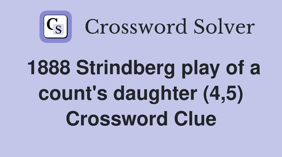 1888 Strindberg play of a count s daughter (4 5) Crossword Clue