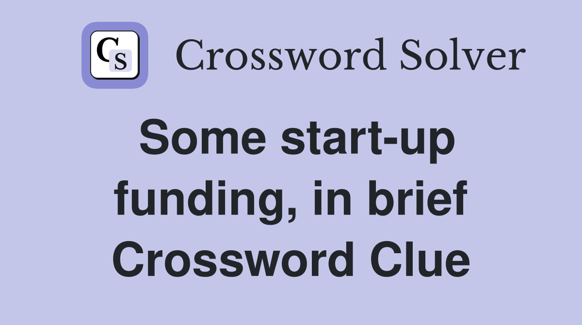 Some start up funding in brief Crossword Clue Answers Crossword Solver