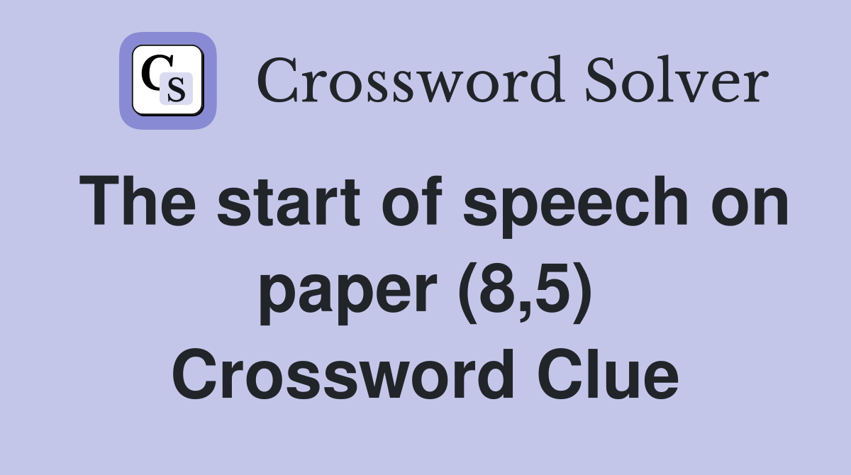 The start of speech on paper (8 5) Crossword Clue Answers Crossword
