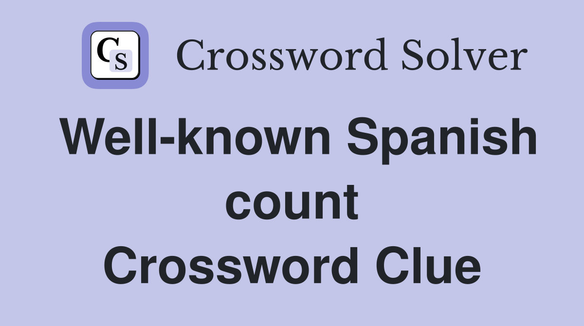 Well known Spanish count Crossword Clue Answers Crossword Solver