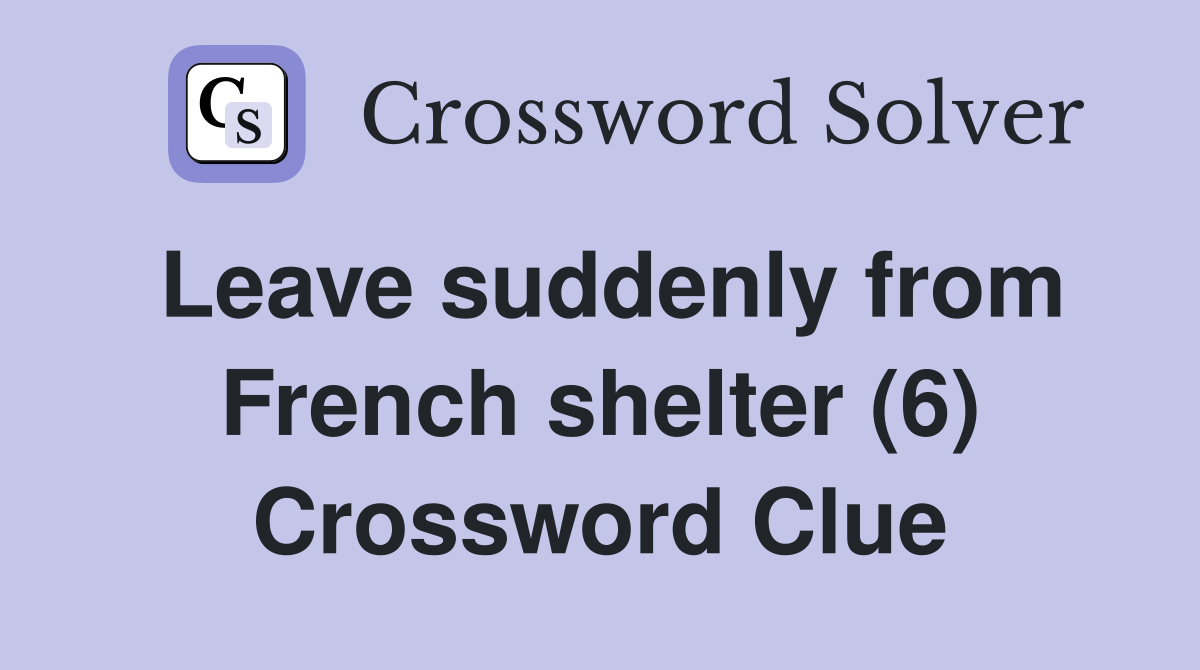 Leave suddenly from French shelter (6) Crossword Clue Answers