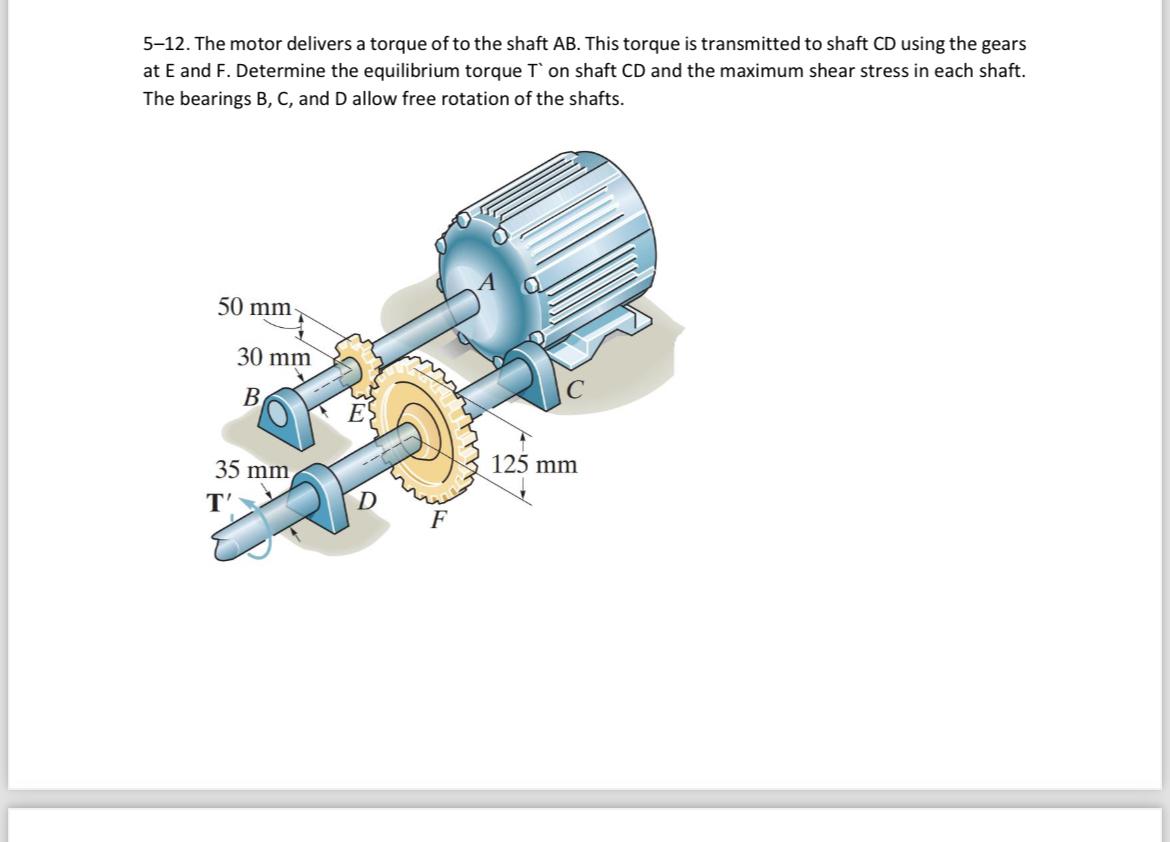 Solved 5 12 The motor delivers a torque of to the shaft AB Chegg com
