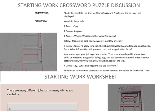 Jobs Starting work crossword puzzle and lesson plan (UK) Teaching