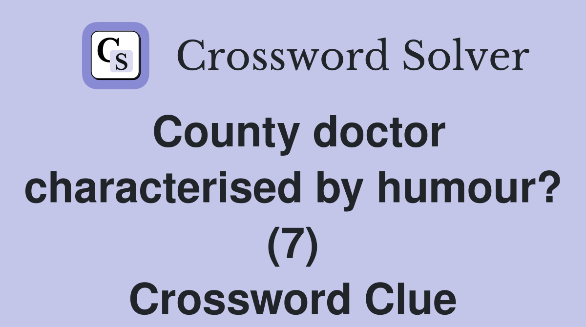 County doctor characterised by humour? (7) Crossword Clue Answers