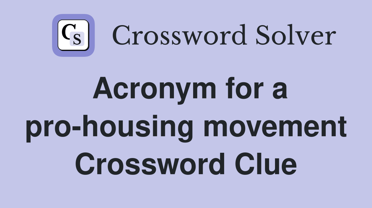 Acronym for a pro housing movement Crossword Clue Answers Crossword