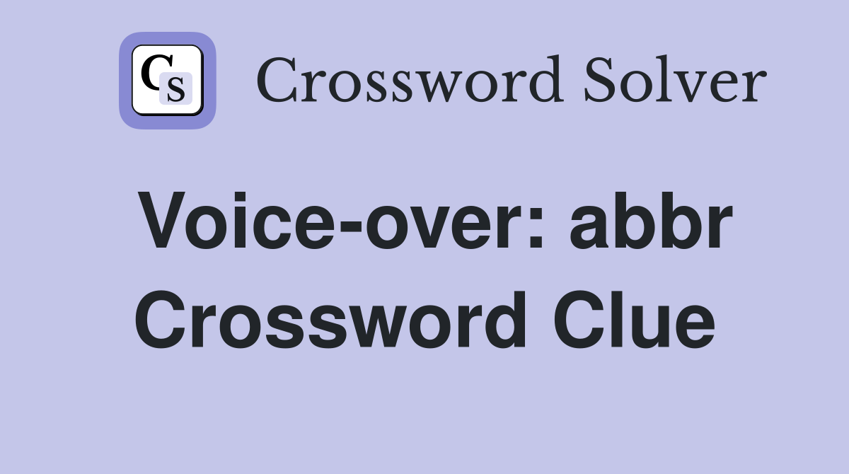 Voice over: abbr Crossword Clue Answers Crossword Solver