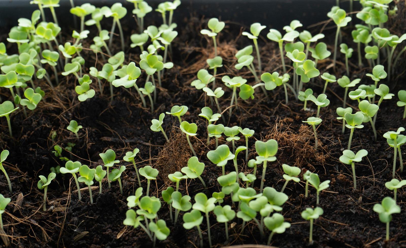 Broccoli shoots Young broccoli shoots peeking out from the By