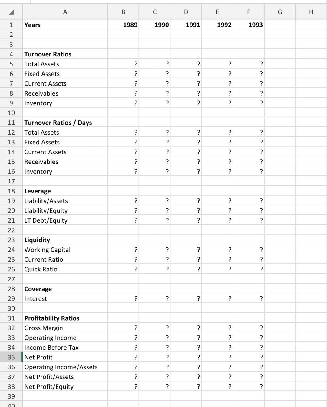 Solved А B B C C D E F G H m 1 Years 1989 1990 1991 1992 Chegg com