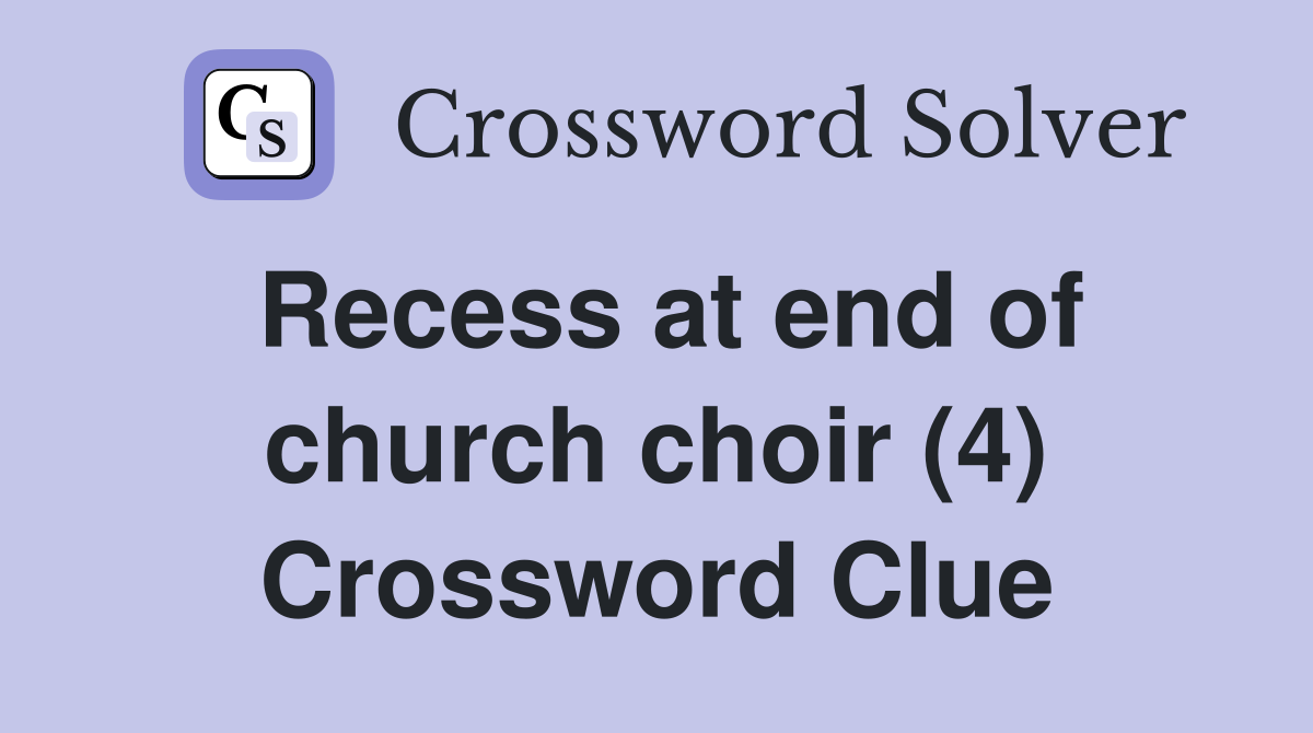 Recess at end of church choir (4) Crossword Clue Answers Crossword
