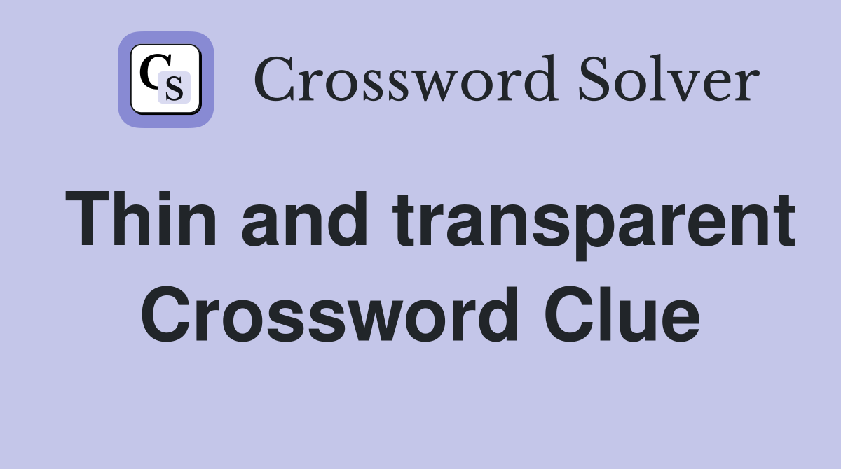 Thin and transparent Crossword Clue Answers Crossword Solver