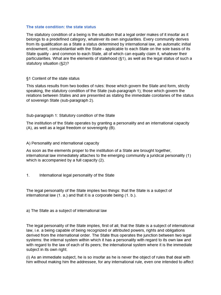 The State Condition PDF Sovereignty International Law