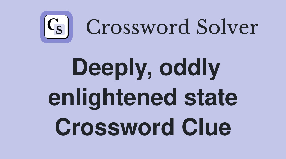 Deeply oddly enlightened state Crossword Clue Answers Crossword Solver
