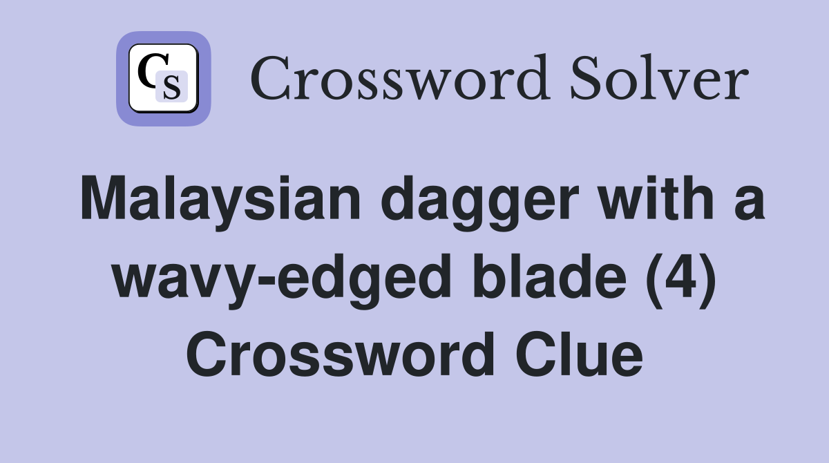 Malaysian dagger with a wavy edged blade (4) Crossword Clue Answers