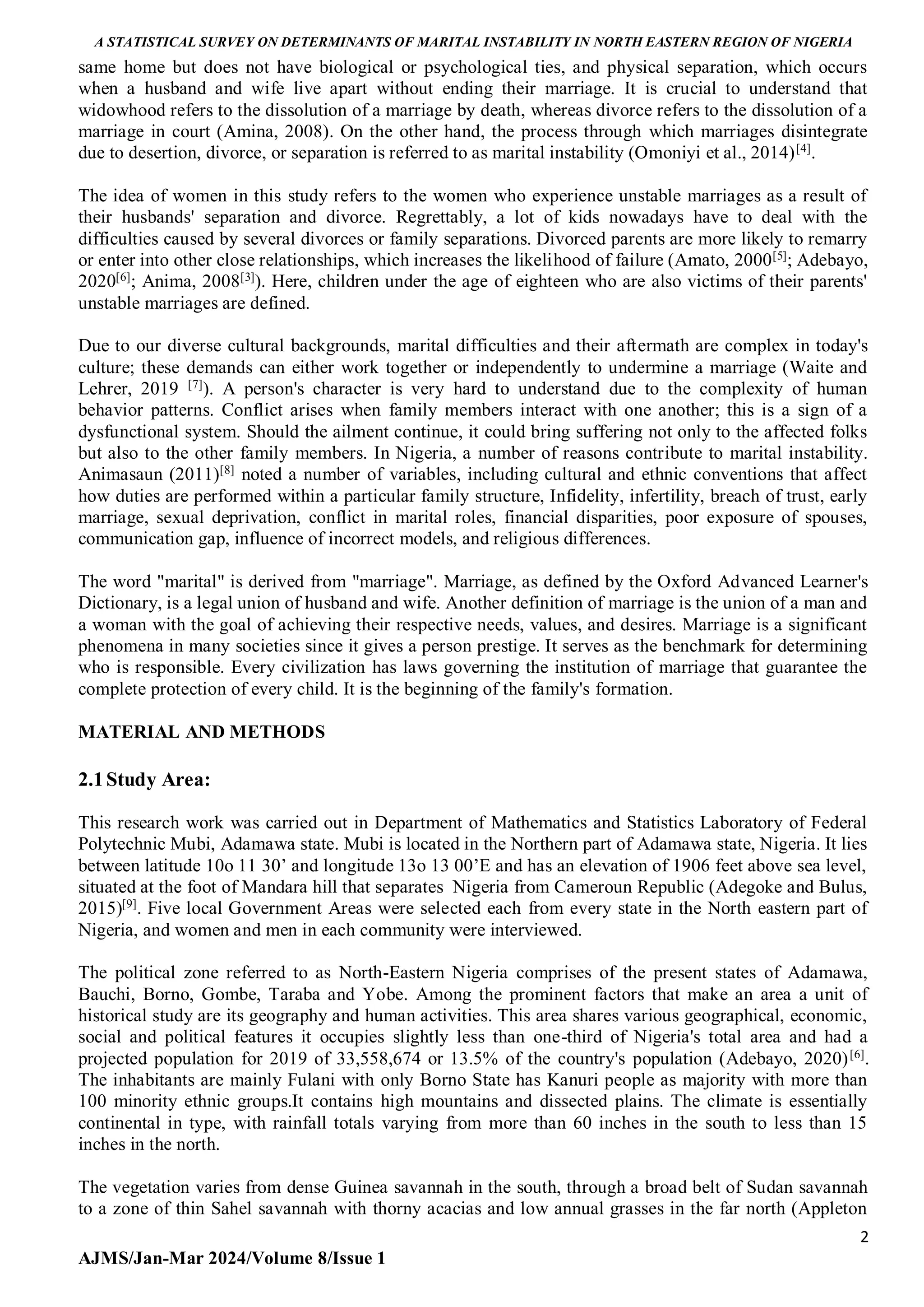 A STATISTICAL SURVEY ON DETERMINANTS OF MARITAL INSTABILITY IN NORTH