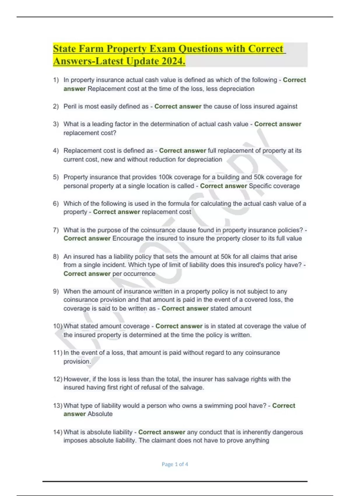State Farm Property Questions and correct Answers 2024 State Farm