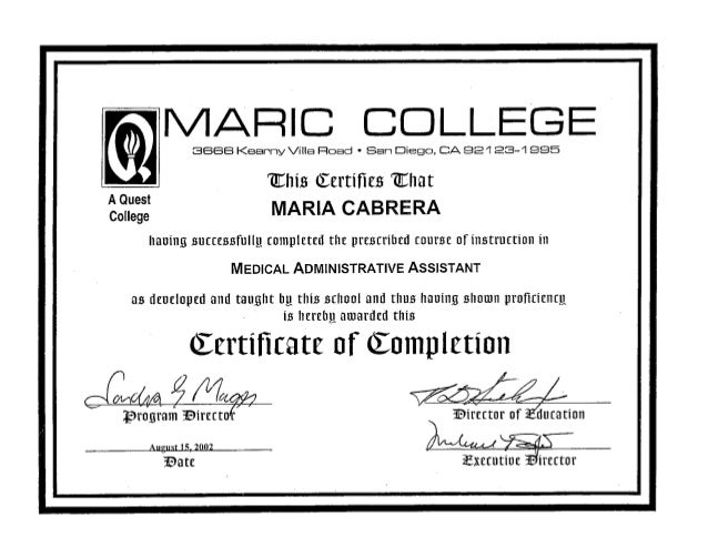 Medical Assistant Certificate Of Completion