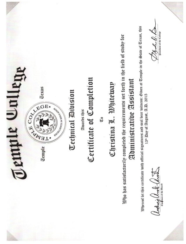 Administrative Assistant certificate PDF