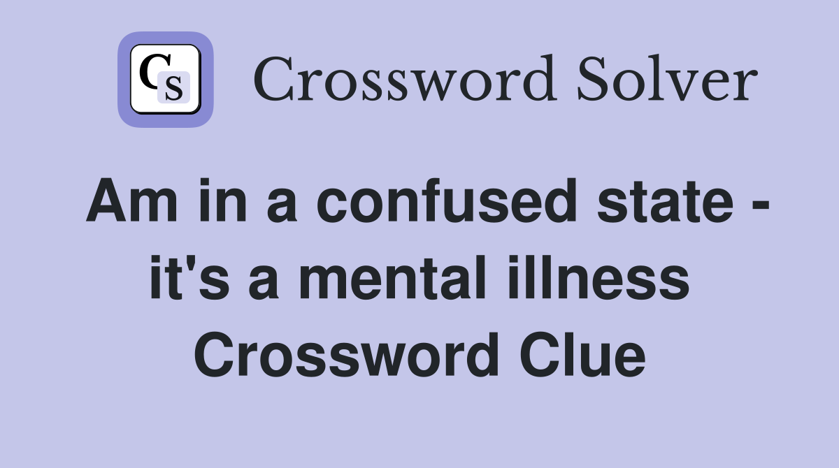 Am in a confused state it s a mental illness Crossword Clue Answers