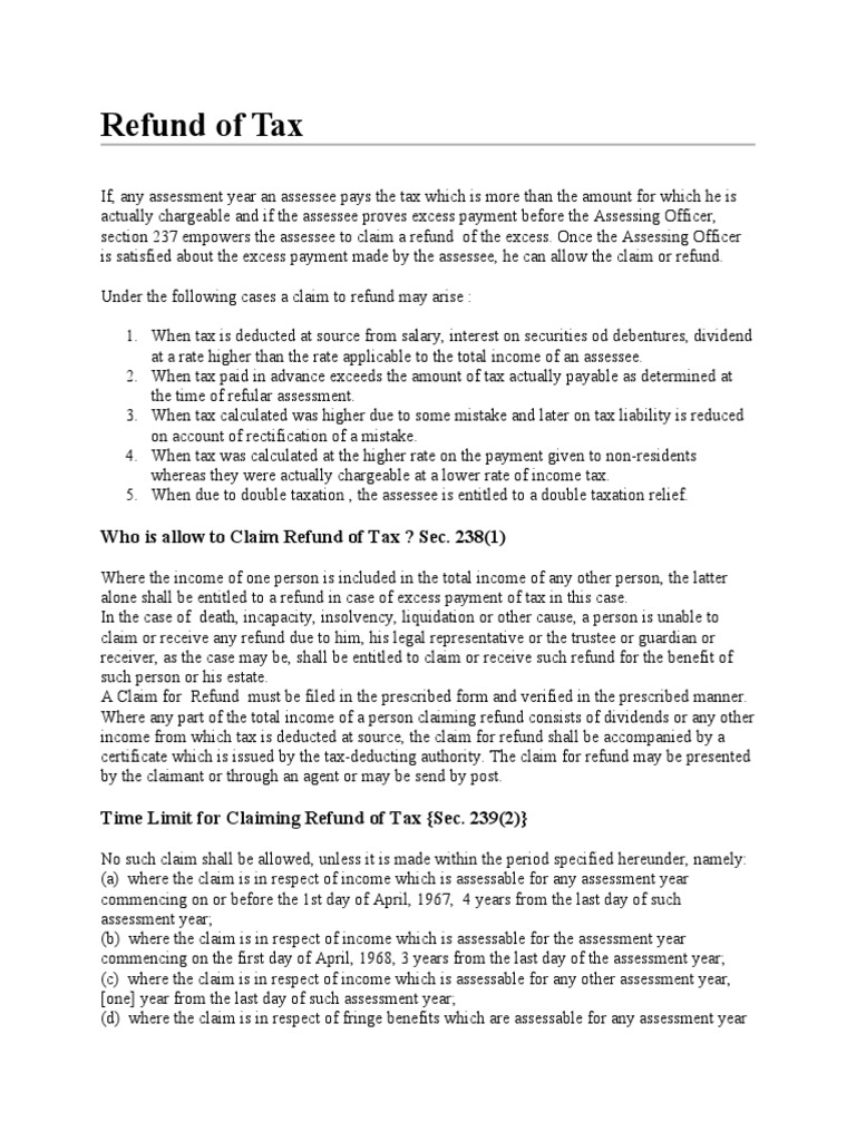 Refund of Tax PDF Taxes Double Taxation