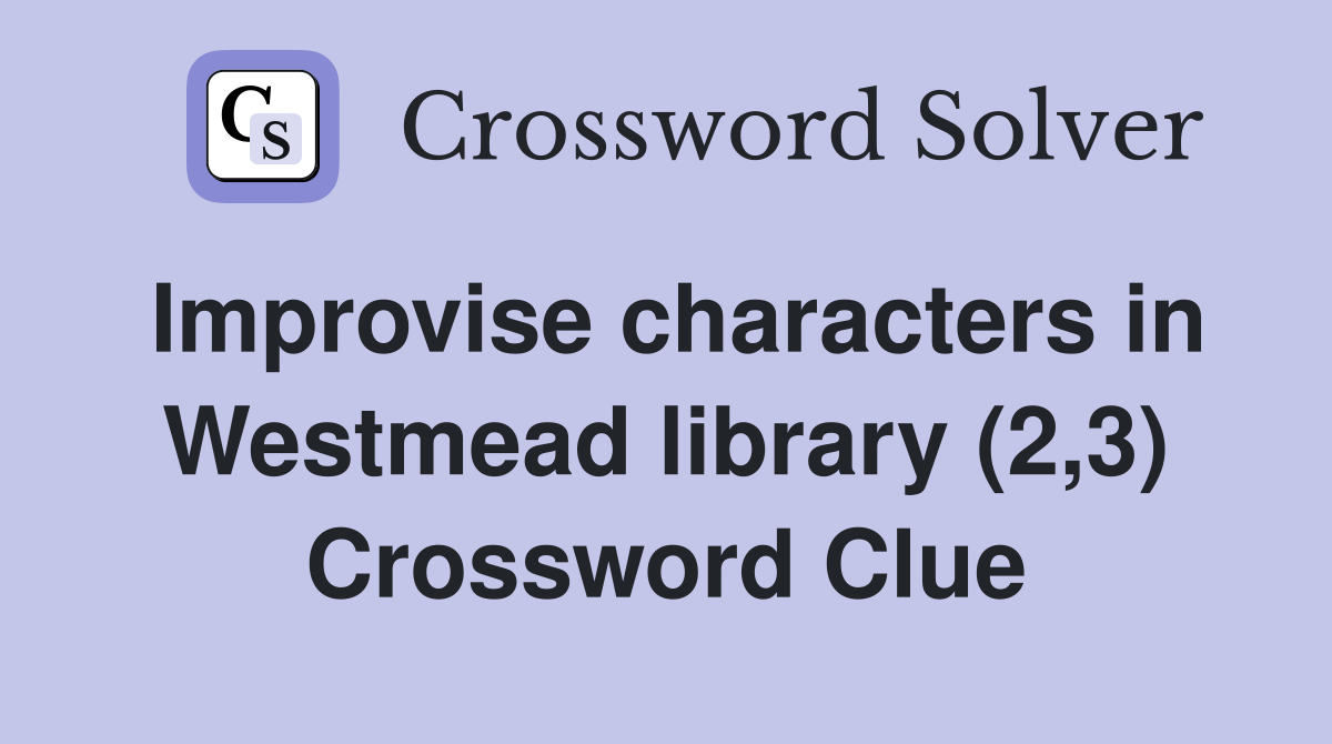 Improvise characters in Westmead library (2 3) Crossword Clue Answers