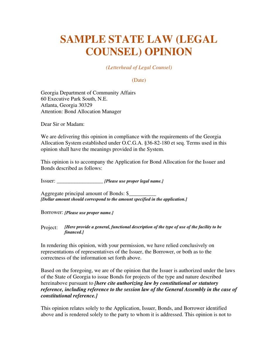 Georgia (United States) Sample State Law (Legal Counsel) Opinion Fill