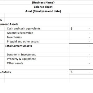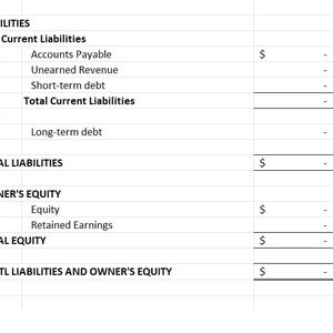 Balance Sheet Statement of Financial Position Excel Template Digital