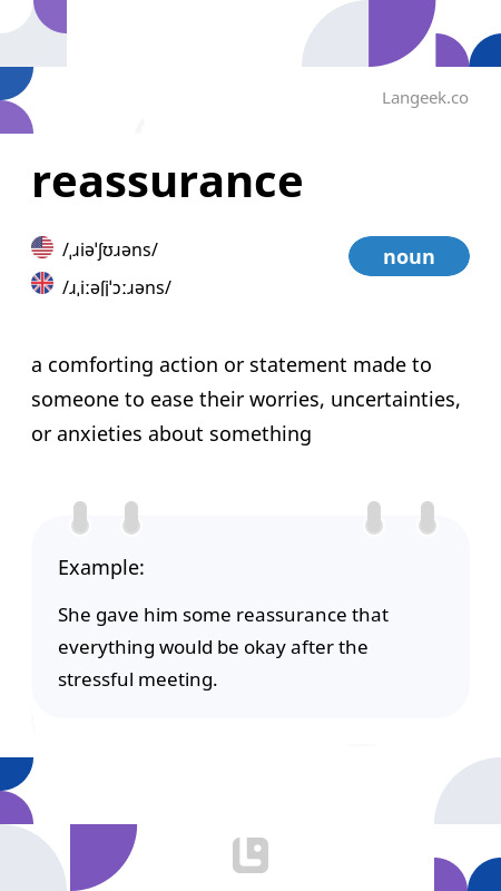 Definition Meaning of Reassurance Picture Dictionary
