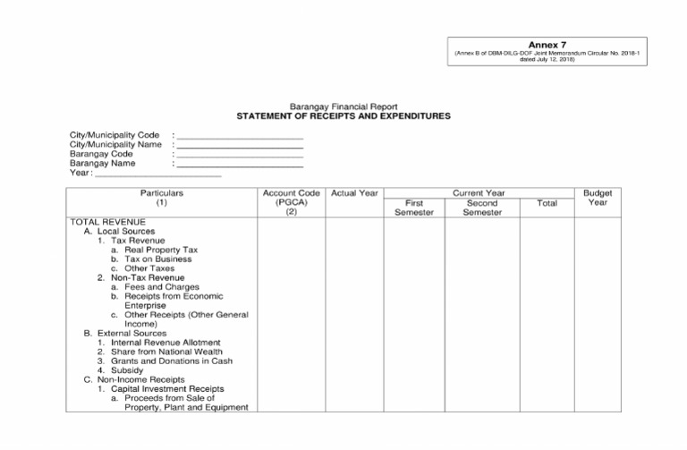 Barangay Financial Report: Statement of Receipts Expenditures (Annex