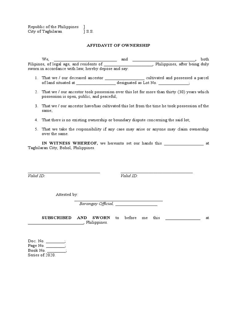 Affidavit of Ownership Template PDF