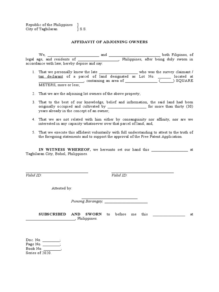 Affidavit of Adjoining Owners Template PDF