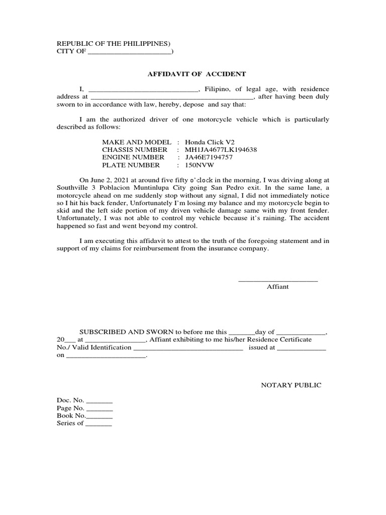 Affidavit of Accident Template PDF