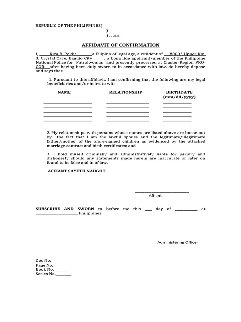 Affidavit of Confirmation Template PDF