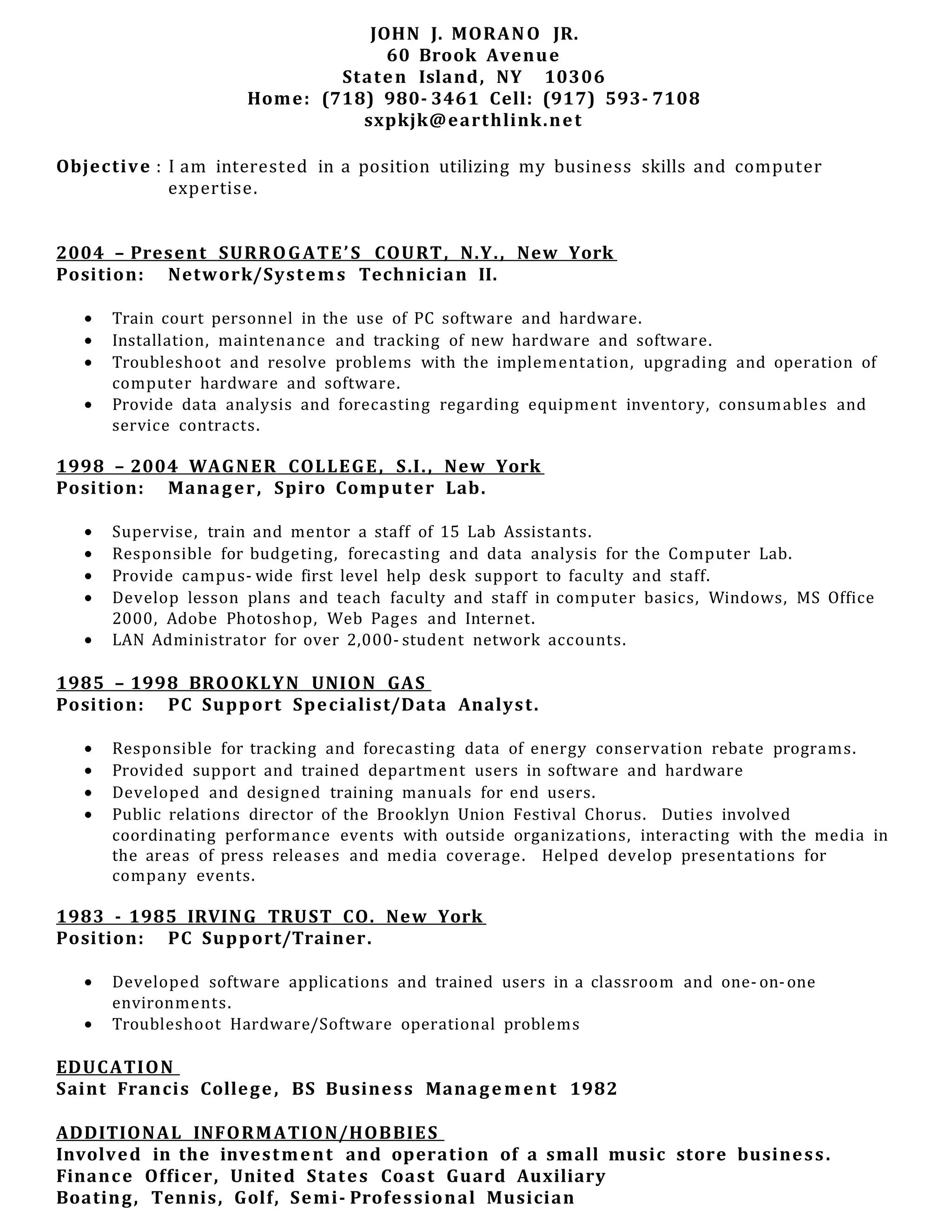John morano resume 2016 DOC