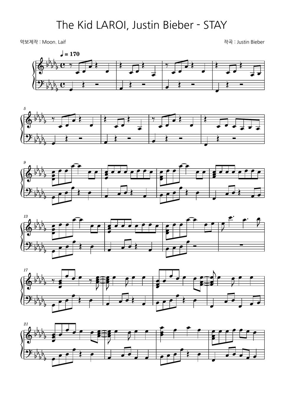 저스틴 비버 Stay 악보해석 : 지식iN