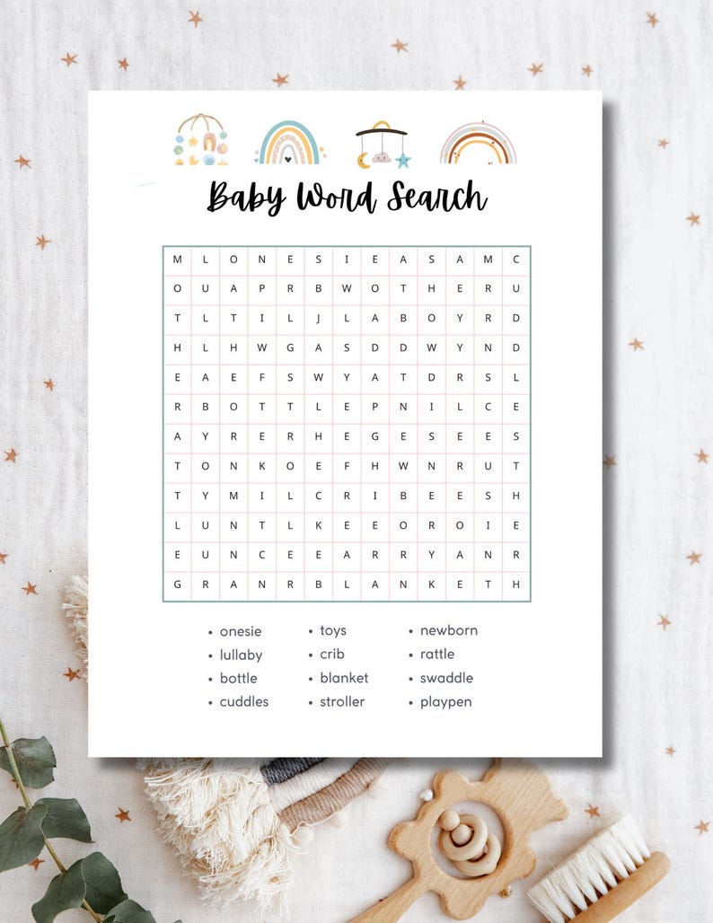 Baby Shower Word Search Game Crossword Puzzle Game Gender Neutral