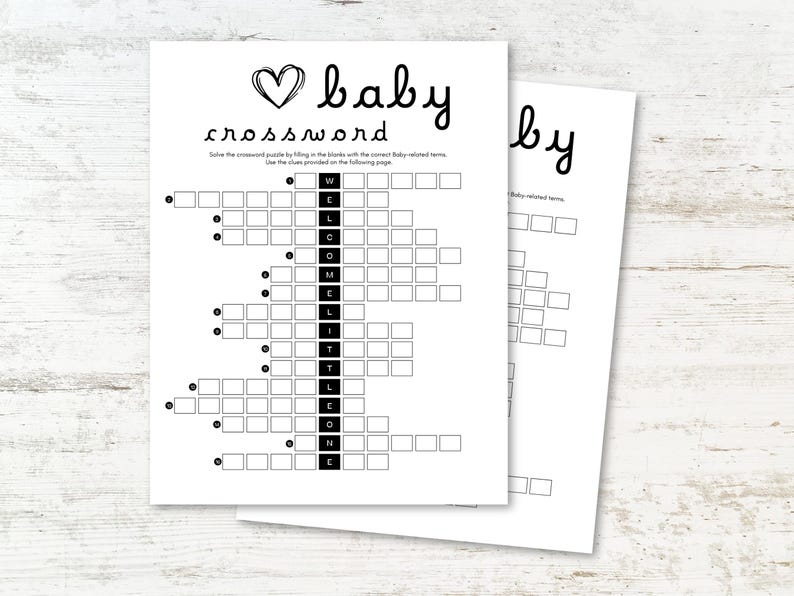 Baby Shower Crossword Printable Gender Neutral Baby Shower Game Black
