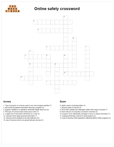 Internet Safety Vocabulary Crossword Staying Safe Online