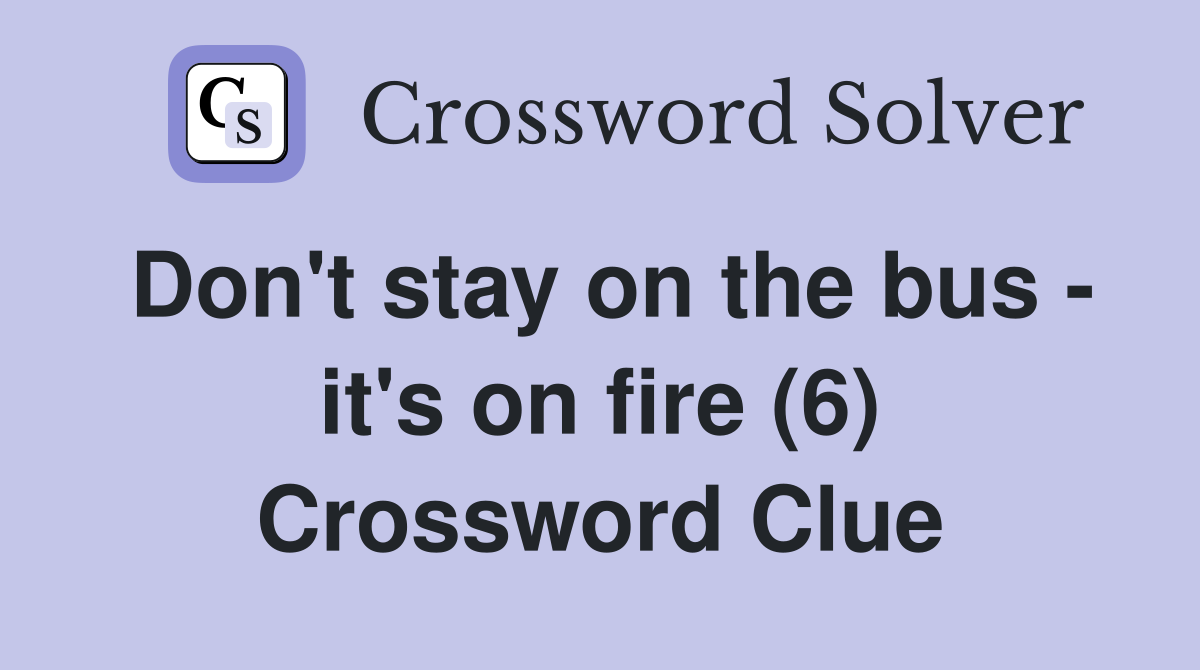 Don #39 t stay on the bus it #39 s on fire (6) Crossword Clue Answers