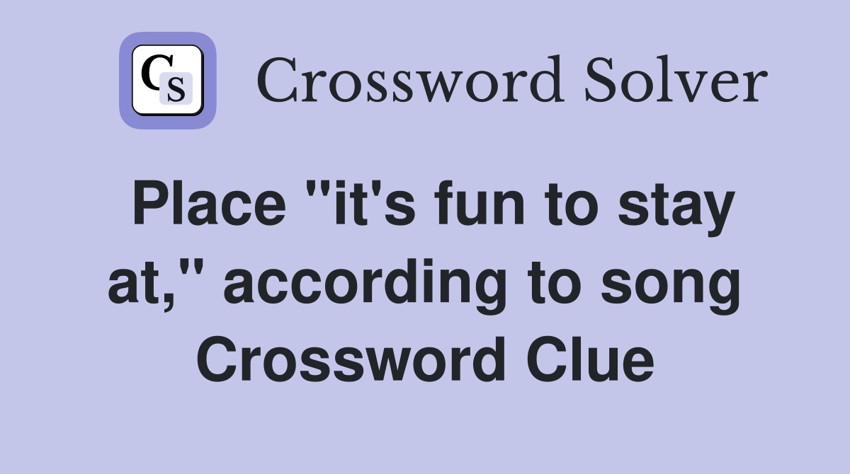 Place quot it #39 s fun to stay at quot according to song Crossword Clue Answers